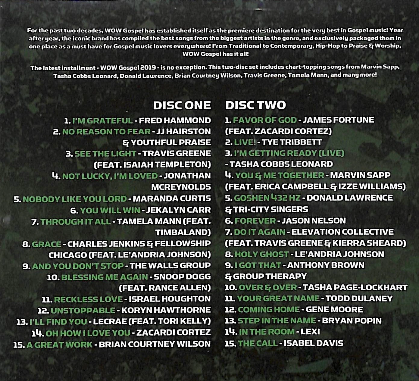 :WOW Gospel 2018 is the premier annual collection of top selling artists from Traditional to Contemporary Gospel.